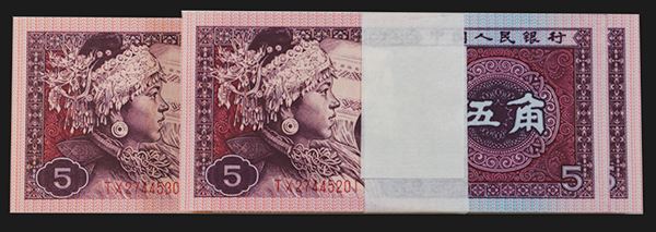 China, Peoples Republic, 5 Jiao, 1980. Miao and Zhuang children at left. SCWPM 883a. Uncirculated pack of 100 notes.