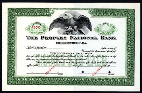 Pennsylvania, 19xx, Specimen Stock, Odd Shares, Black print on green border and underprint, Bald Eagle top center, Red SPECIMEN stamps and POC's, VF-XF condition, E.A.WBNC.