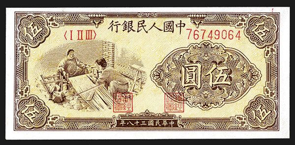China, 5 Yuan, p-813, S/M#C282-21, Issued banknote, S/N 76749064, Unc. to CU.