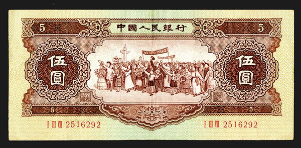 China, 1956, 5 Yuan, P-872 S/M#C283-43, Issued Banknote, VF to Choice VF, S/N I III VIII 2516292, Attractive note.