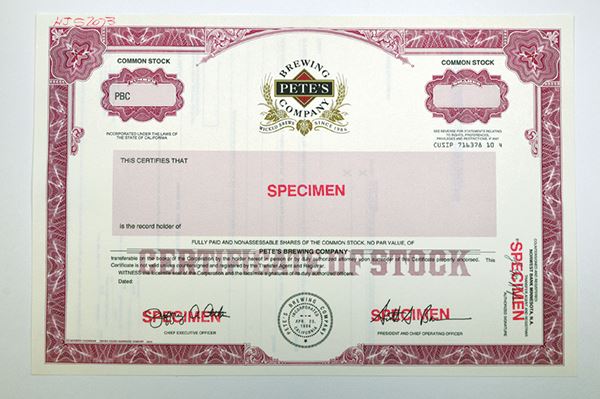 California. -Odd Shrs Stock Certificate Specimen. Security-Columbian USBNS. Extremely Fine.