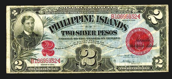 Philippine Islands. 1906. $2. Rizal portrait at top left. SCWPM 32f. Harrison and Fitzsimmons signatures. Very Good to Fine.