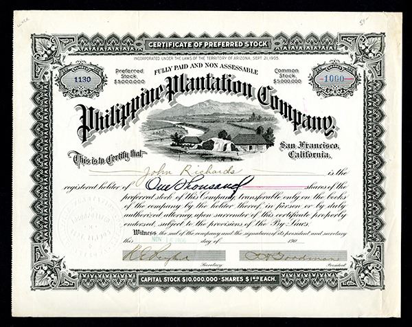 AZ. 1000 Shrs Stock Certificate. Issued. Uncancelled. VF