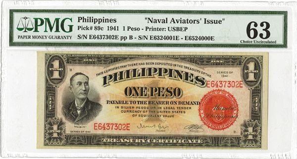 Philippines. Issued 1 Peso, P-89c, PMG graded Choice Uncirculated 63. USBEP.