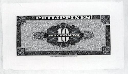 Philippines, 1949. 10 Centavos. P-127 Unlisted Color Trial Proof Back. Printed in black on glossy white paper with large margins, 95 x 40 mm. CU to Gem Uncirculated condition, back is blank, Rare color trial proof. SBNC.