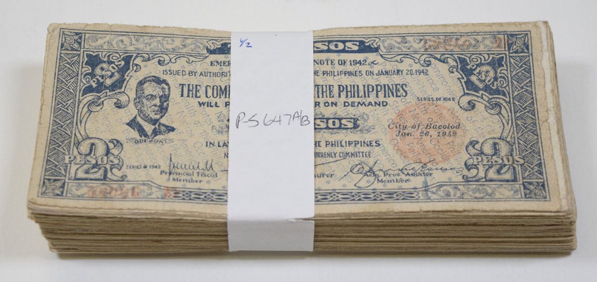Philippines, 1942. 2 Pesos, P-S647A and P-S647B Issued Banknote Collection, Blue on blue underprint or Purple on purple underprint with Quezon at left and a red or pale red-orange commonwealth seal at right, Notes are in Fine to VF condition. (100). Sold "AS IS" no returns accepted.