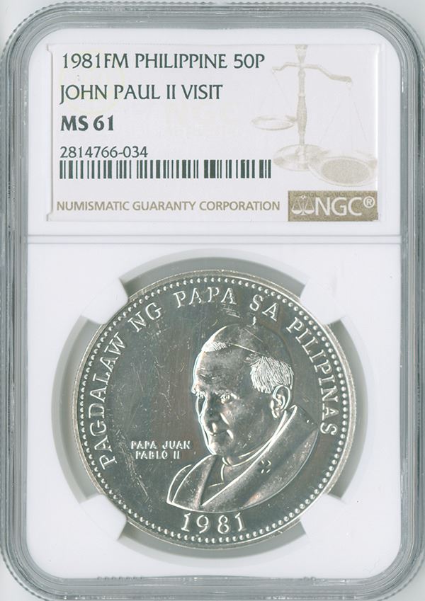 Philippines. Silver 50 Piso 1981FM. NGC MS-61. 10000 minted.