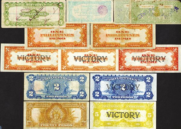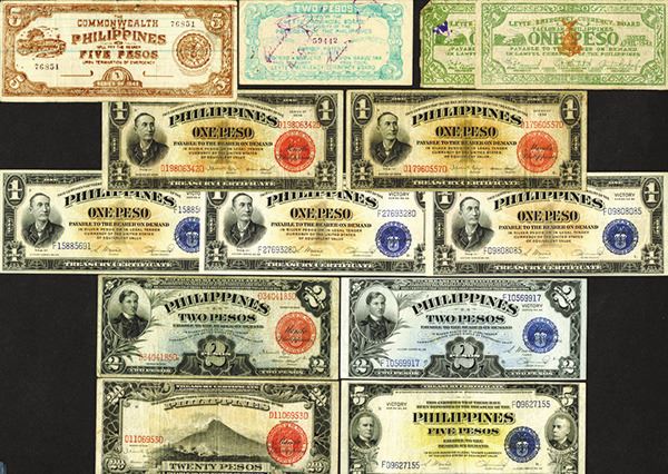 Philippines. 1, 2, 5, 20 Dollars. Includes Series of 1936 (4), Victory Series 66 (5). Plus 4 notes from Leyte. Generally Very Good-Fine. 13 pieces