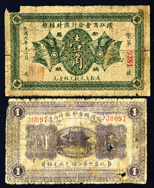 Harbin, China, Lot of 2 notes, Include 1917 dated, 10 cents, Pinkiang, P-Unlisted, both are in Good+ to almost VG with faults, pin holes, corner tips missing, both scarce and rarely seen.
