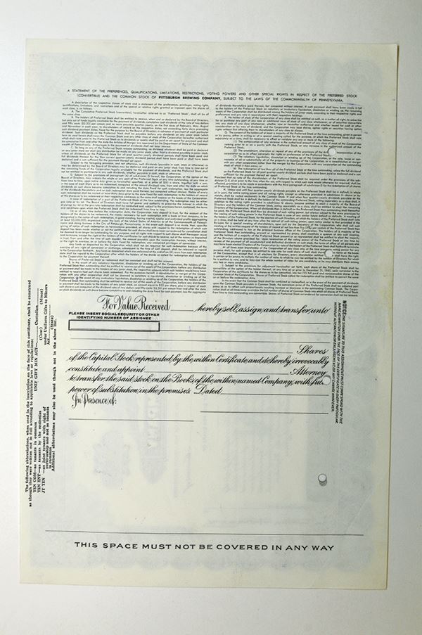 Pennsylvania. <100 Shrs Stock Certificate. Specimen. Security-Columbian USBNC. Extremely Fine.