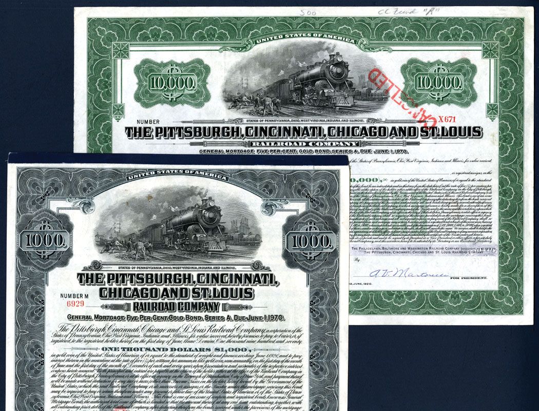 Pennsylvania, Lot of 2, $1000, 5% gold bond; $10,000 5% gold bond, ABNC. VF.