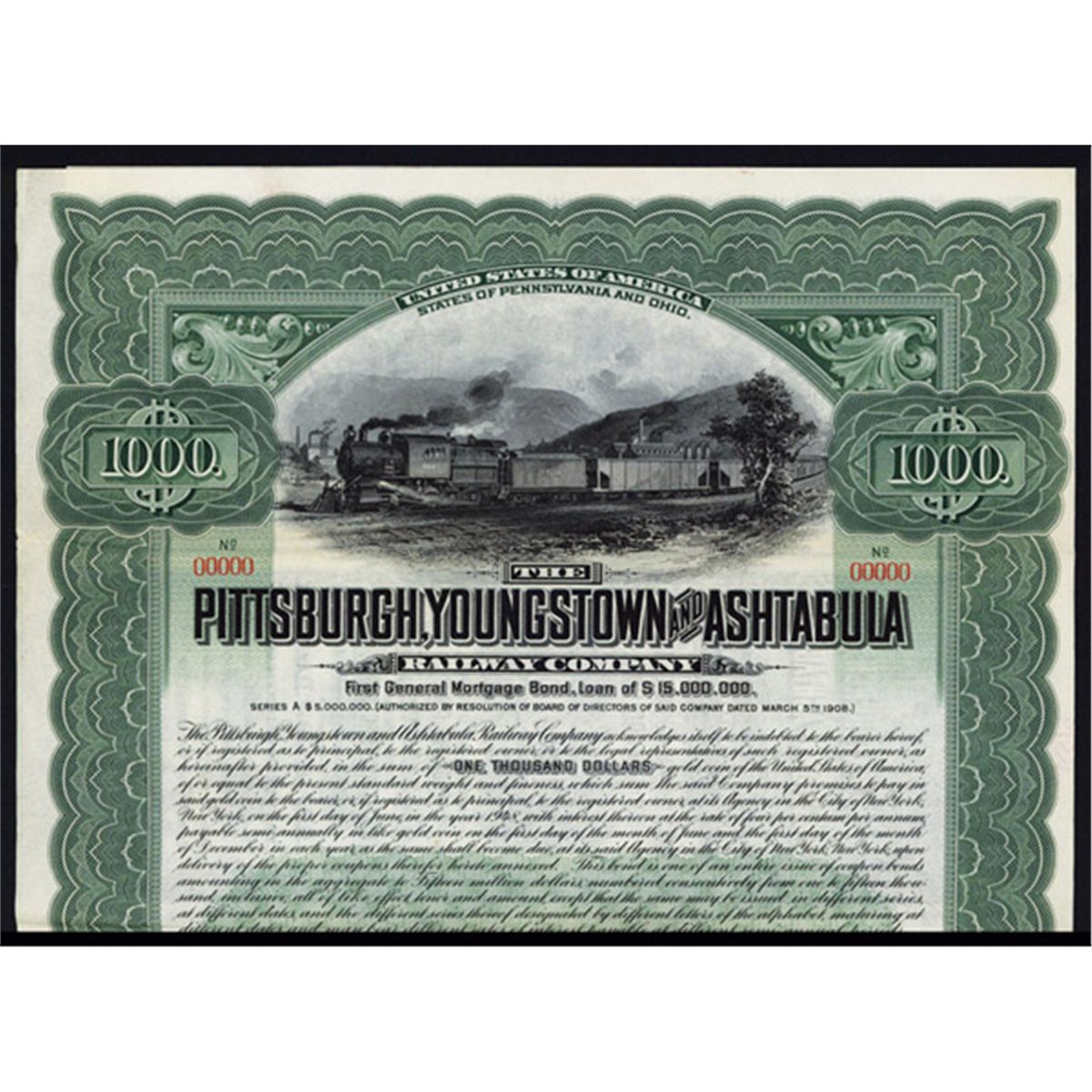 Ohio, Pennsylvania, 1908, $1000 Bond, Specimen, Freight train, Green, #00000, ABNC, POC's, XF.