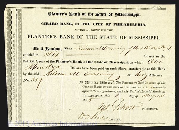 Mississippi. 100 Shares Capital Stock Issued Certificate, Black print on black border, Company title at top, Fine condition, .