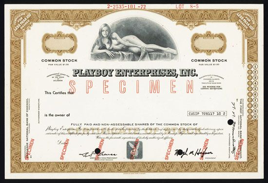Delaware, 1972, <100 Shares, Specimen Stock, Black on brown border and underprint, Nude reclined female top center, Red large and small SPECIMEN overprints POC's, VF-XF condition, ABNC