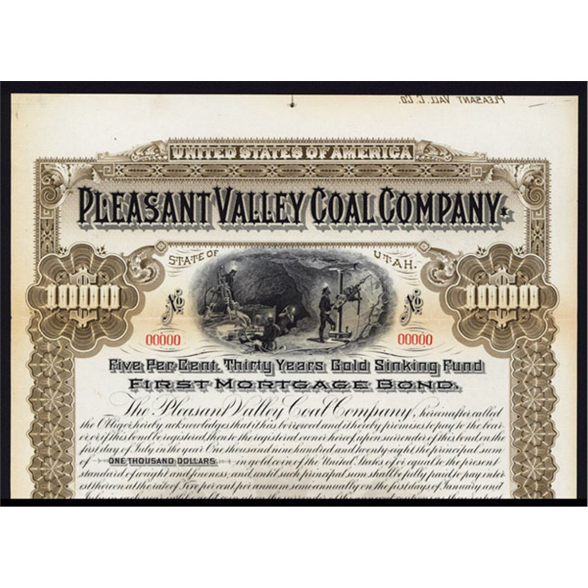Utah, 1898, $1000, 5% 30 Year Gold Sinking Fund First Mortgage Bond, Specimen, Black on brown border and underprint, Coal mining scene, VF-XF condition, Franklin-Lee BNC.