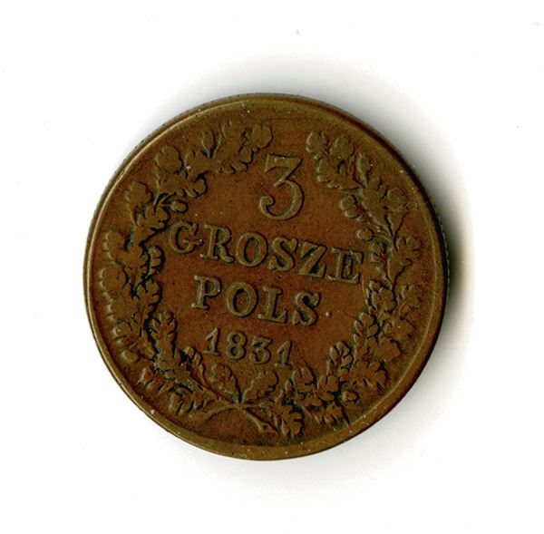 Poland, 3 Grosze coin issued during the "November Uprising" (1830-1831) when Poland was under Russian occupation. This tough type grades choice VF.
