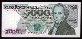 Lot of 8 notes. Polska Rzeczpospolita Ludowa, 2000 Zt, P-147a, Unc.; P-147b, XF+ to AU; P-147c, Unc.; 10 Zt, P-148, Unc.; 10 Zt, P-149, Unc.; 5000 Zt, P-150a, b and c. in XF+ to Uncirculated condition. Nice assortment of modern polish notes that are becoming scarcer in high grade.