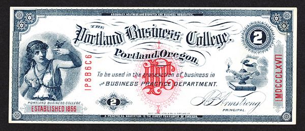 Oregon. 2 Dollars. Bold two color design. Choice Uncirculated.