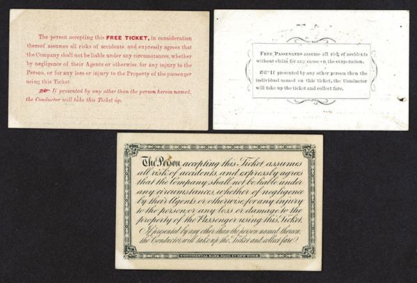 Annual Passes. The first printed on early coated stock, now with edge tone. None endorsed on back. 3 pieces.