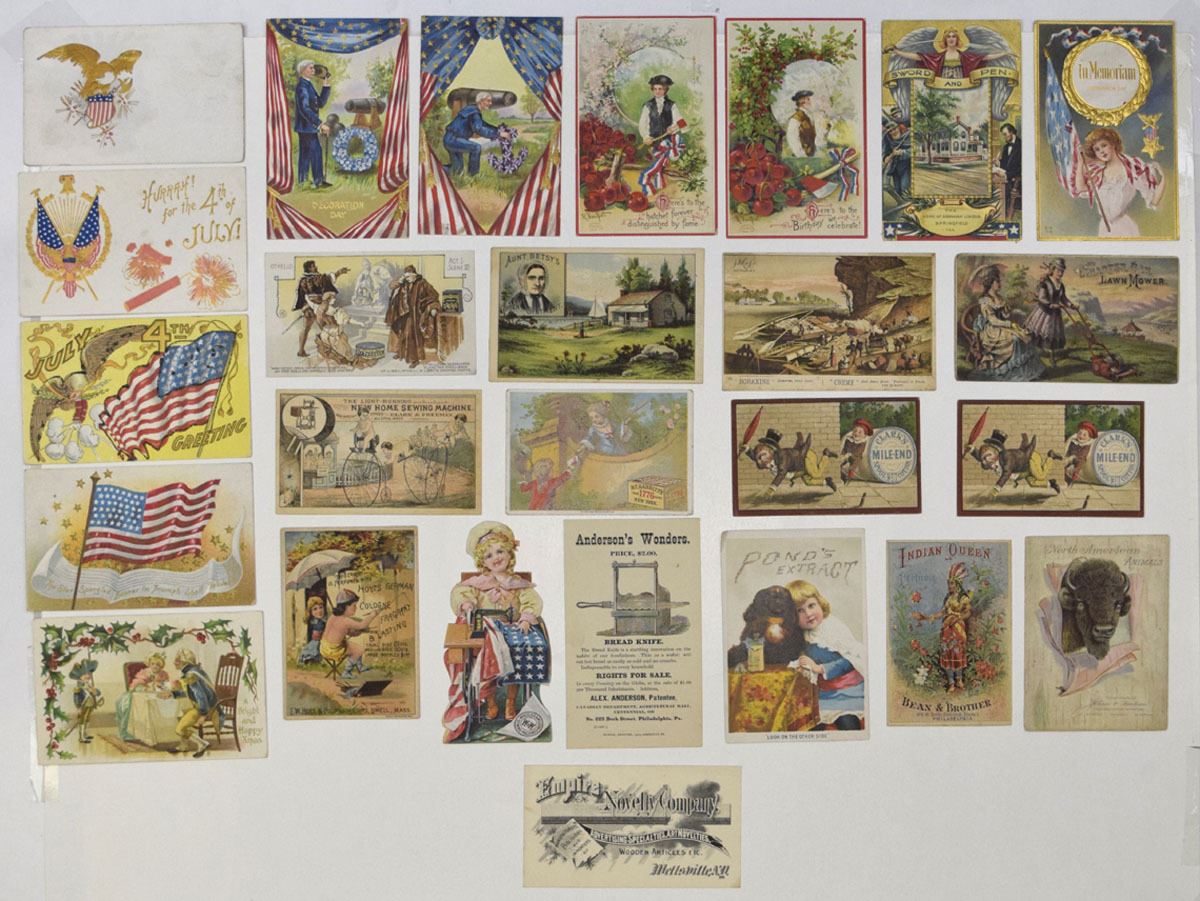 Lot of 26 trade Cards and Post Cards, Trade cards include cigarettes, cigars, canned meats, creams, lotions, and other product advertisements; Post Cards include Patriotic Themes on front, Cards are in full color and range from VF to Mint condition. (26). Sold "AS IS" no returns accepted.