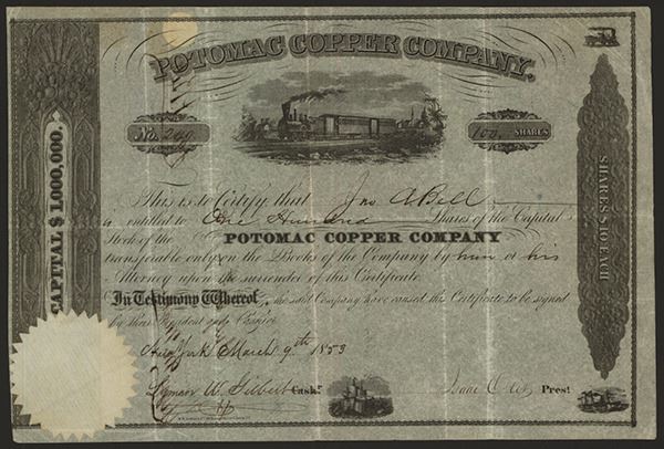 New York, 1853, I/U Stock, #247, 100 Shares, VF condition, W.H. Arthur & Co.