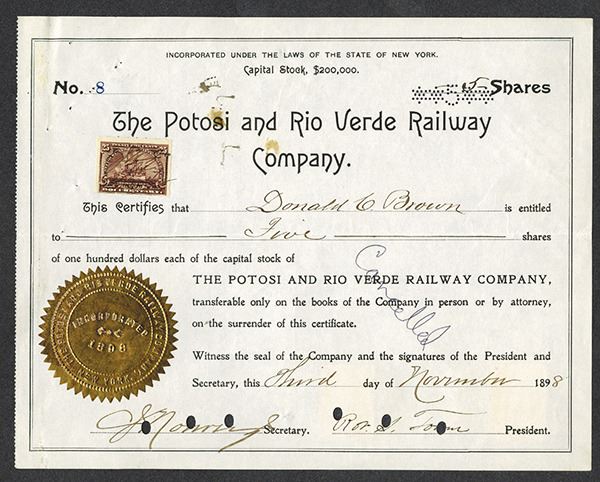 Texas (inc. in New York). I/C, Black with gold foil seal, No vignette, S/N 8, VF. (From a Texas Gentleman's Collection).
