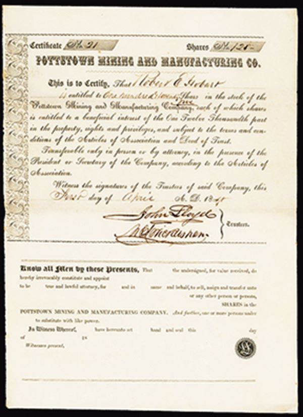 New Jersey, 1848, 125 Shares I/U, S/N #21, Black print with ornate left border no vignette, VF condition.