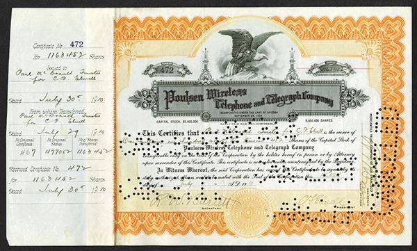 Arizona Territory. 1,163,452 Shrs Stock Certificate. Issued. Cancelled with perforations extensively. Very Fine.