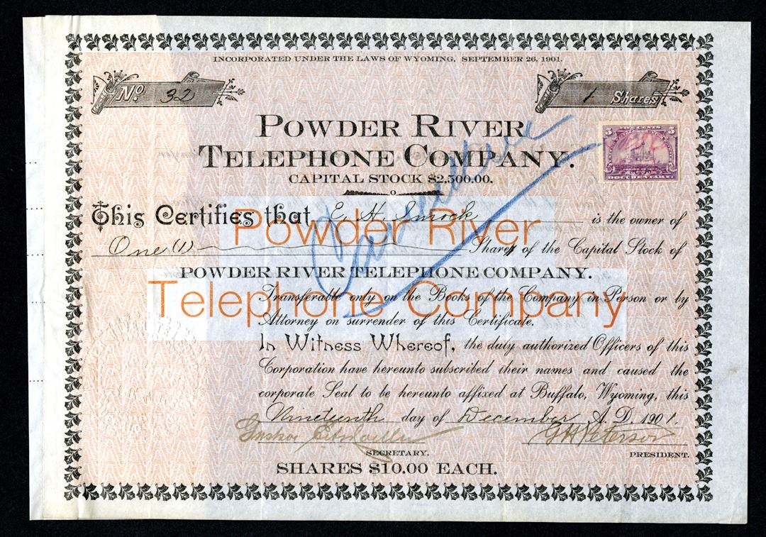 Buffalo, Wyoming. 1 Shrs Stock Certificate. I/C. Nice VF+