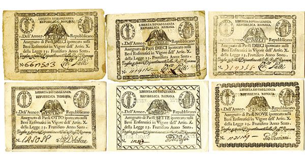 Italy, includes issued 7 Paoli, P-S537, About Uncirculated; 8 Paoli, P-S538, Extra Fine; 9 Paoli, P-S539, Extra Fine; and 3 pieces of 10 Paoli, P-S540 (b, c, d).
