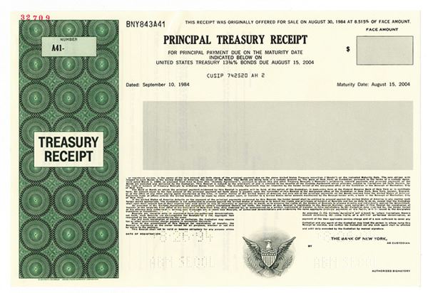 Washington, D.C., $-Odd 13 3/4% Treasury Bond, Black print on green border, title at top, Pin punched cancelled, U.S. Seal ar bottom with eagle, shield, arrows and olive leaves, VF-XF condition, S-CBNC. Rare federal related bond.
