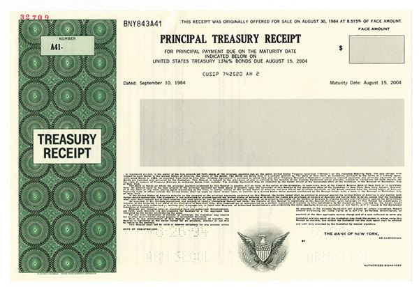 Washington, D.C., $-Odd 13 3/4% Treasury Bond, Black print on green border, title at top, Pin punched cancelled, U.S. Seal at bottom with eagle, shield, arrows and olive leaves, VF-XF condition, S-CBNC. Rare federal related bond.