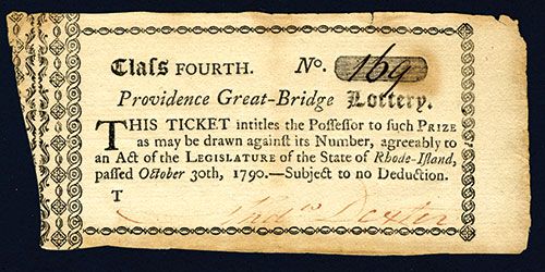 Providence, Rhode Island, Class Fourth, Lottery Ticket, S/N 169, Issued lottery ticket, Black on tan paper with light toning, XF condition, Early Rhode Island Lottery Ticket.