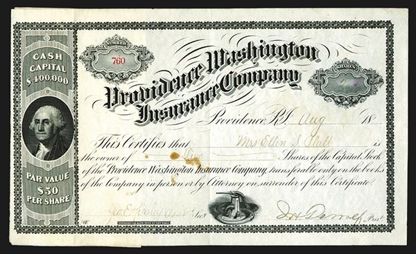 Providence, Rhode Island. 2 shares, George Washington, left, fire hydrant and hose, bottom, VF, age spots.