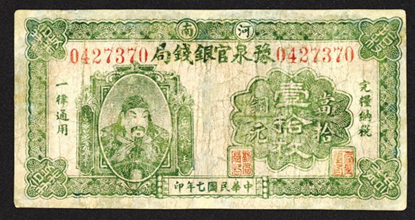 China, 10 Coppers, P-S2977, S/M#Y20-10, Issued banknote, green on face, back red on light yellow, Fine to Choice Fine, Attractive note for the issue.