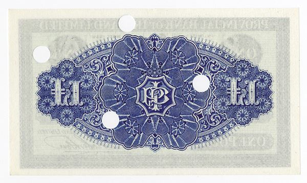 Ireland, 1st December 1926, 1 Pound, P-346b Unlisted specimen without Serial Numbers, POC's, Brittania and Hibernia at top center, Black on light green, back dark-blue, Printed signature of Hume Robinson, 4 large POC's, Uncirculated to CU. Rare note only known in this form.