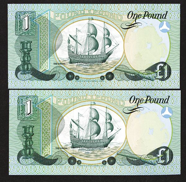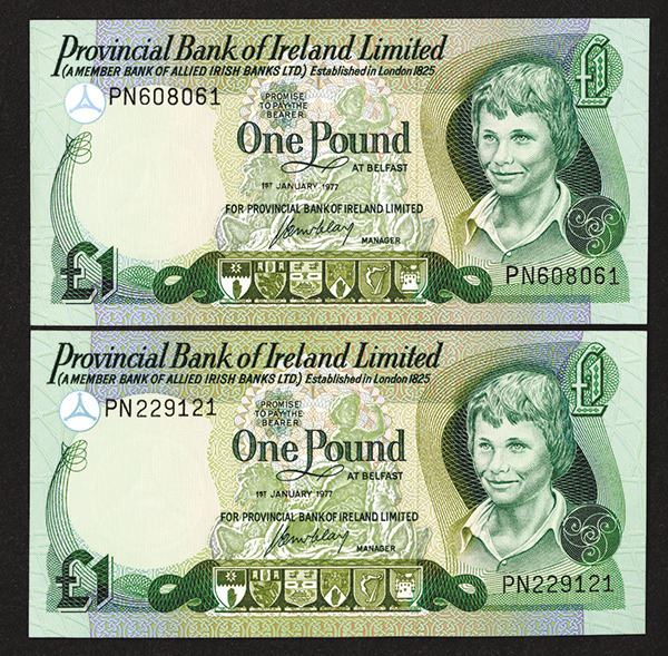 Northern Ireland. 1 Pound. 1.1.1977. SCWPM 247a. Both Choice Uncirculated or better. 2 pieces. (Arthur C. Matz Collection)