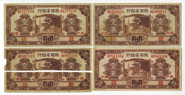 China, Lot of 4 notes, all are 1 Yuan, P-S2684, S/M#S24-10, Issued, Includes 2 intact notes, both Choice Fine to VF and 2 damaged notes, one split horizontally completely that could be repaired and one with a vertical tear down the middle that could also be repaired. Attractive and scarce note.