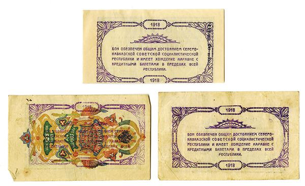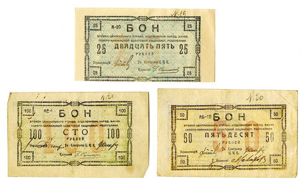 Russia - North Caucasus, lot includes 100 Rubles, P-S453; 50 Rubles, P-S452; and 25 Rubles, P-S451. Fine to Very Fine condition.