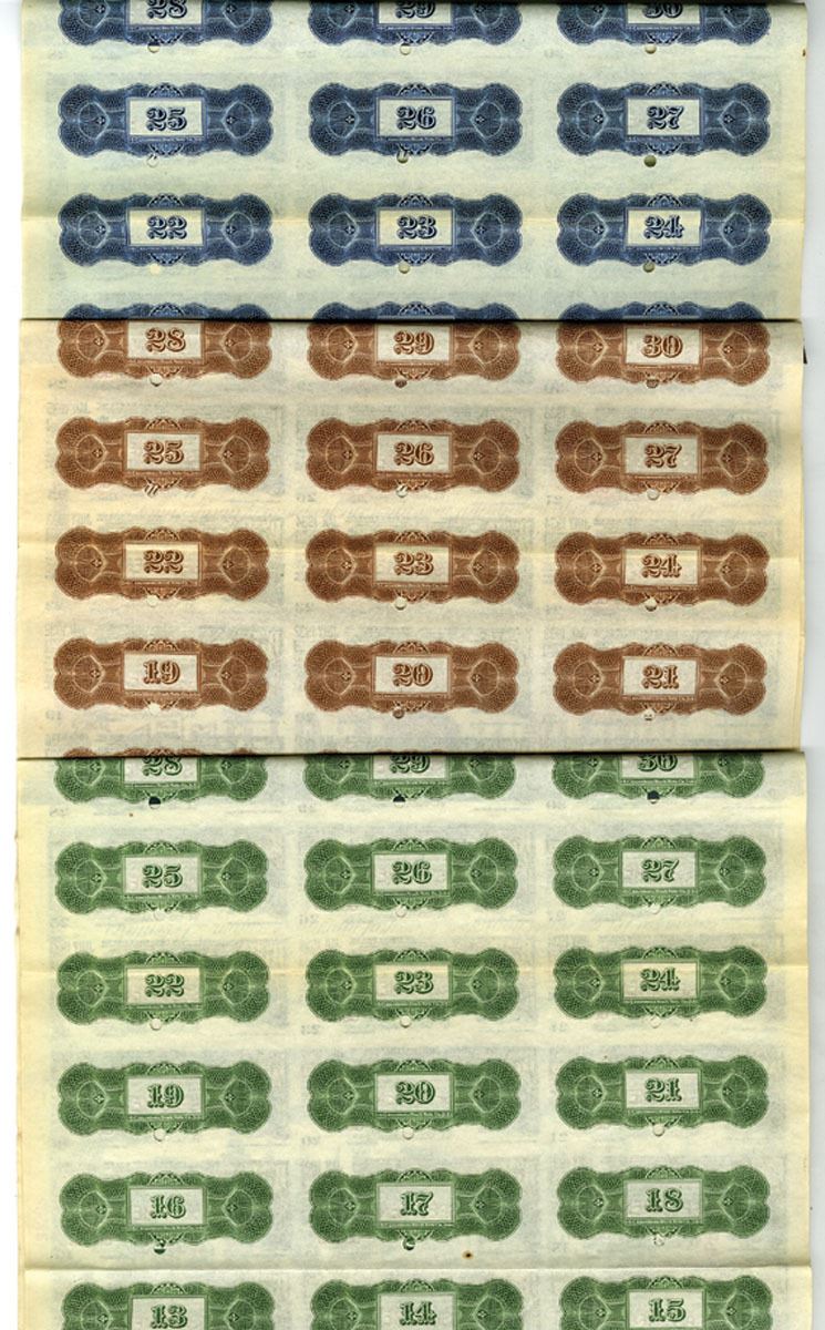 Cuba (Inc. in Delaware), 1922. Lot of 3 15 Year 7% Sinking Fund Convertible Debenture Coupon Bonds in 3 different denominations: $100 in blue, $500 in brown, $1000 in green. All bonds have vignette of men harvesting tobacco, Specimen overprints and POCs, are in VF to XF condition, and printed by ABNC. (3). Sold "AS IS" no returns accepted.