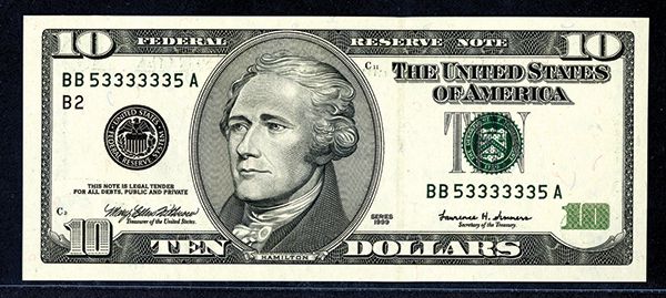 Radar, Binary Serial Number and Near Solid 3’s. $10 1999 FRN BB53333335A PCGS 76PPQ; Similar 2009 JI01111111A PMG67EPQ; Similar 2004A CF33333376B PMG 66EPQ. [3]