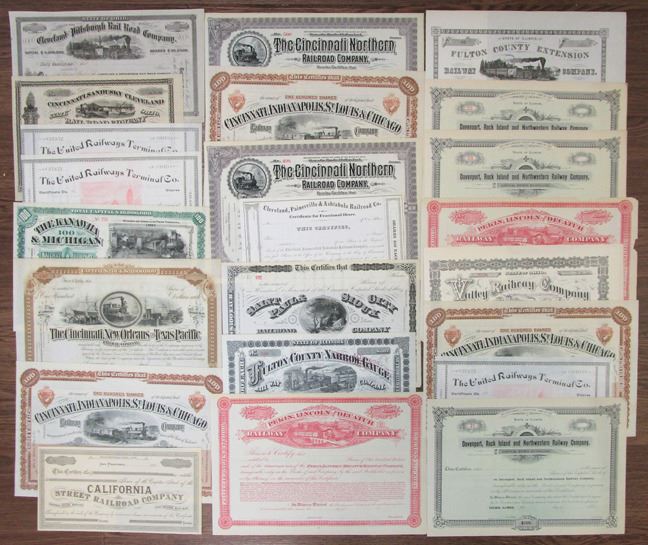 Railroad Assortment of Unissued Stock Certificates, ca.1860s-1900s, CA, IL, OH, IN, MN, and Other St