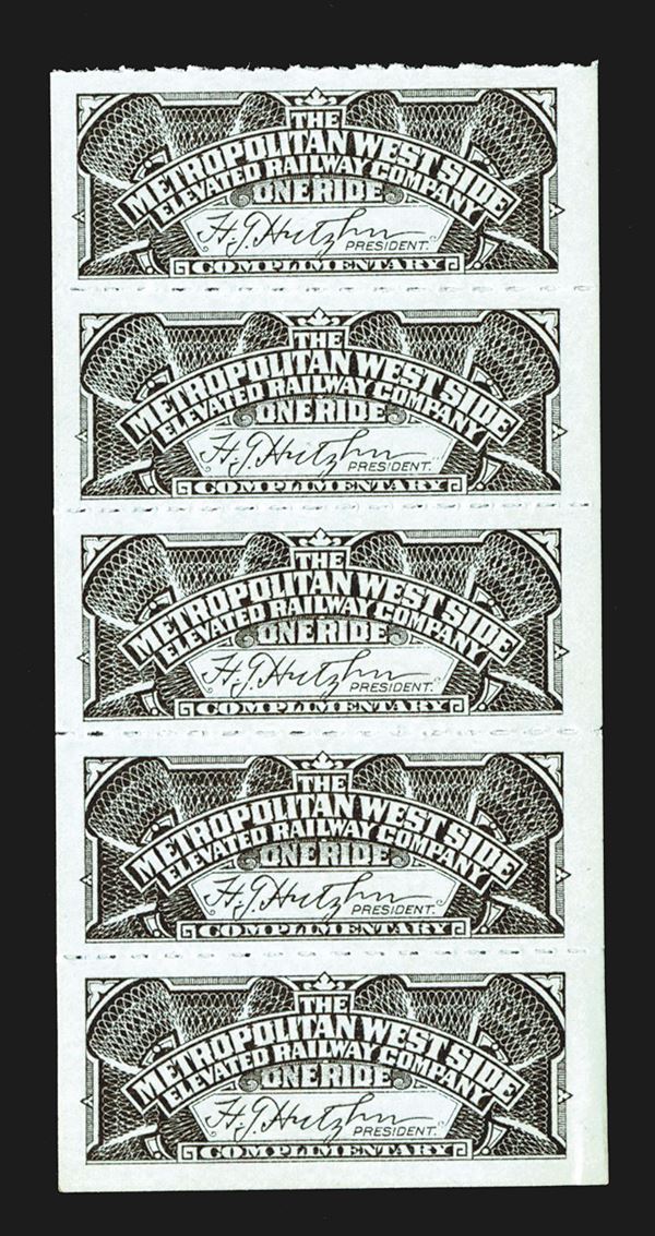 Chicago. IL. Metropolitan West Side Elevated Railway Co. Strip of five tickets.
