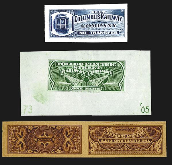 OH. Cleveland City Railway Co., face and back pair; Toledo Electric Street Railway Co., Columbus Railway Co. 4 pieces.