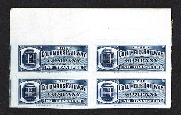 OH. Columbus Railway Co. Block of 4 on card stock. Uniface.