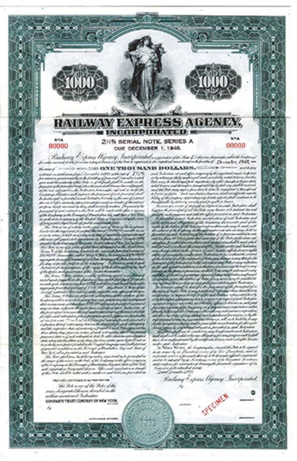 Delaware. $1000 Specimen 2 1/2% Series A Serial Note Coupon Bond, Black print on green border and under tint, Allegorical woman at top with locomotives behind her, Specimen overprints and POC's, VF-XF condition, ABNC.
