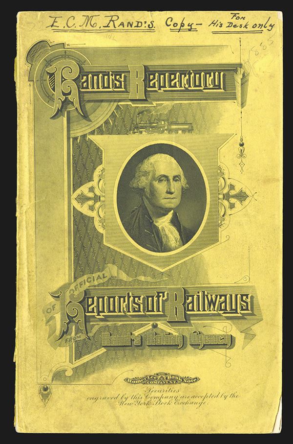 NY. Rand's Rating Agency. NY. Intaglio Washington by Homer Lee BNC as cover. 114 pages plus ads in front and back. Stitched binding, paper cover. Index tabs to chapters. On Cover E.C.M. Rand's Copy, From His Desk Only. Additional pencil notations. Thomas Rogers intaglio portrait included in book.