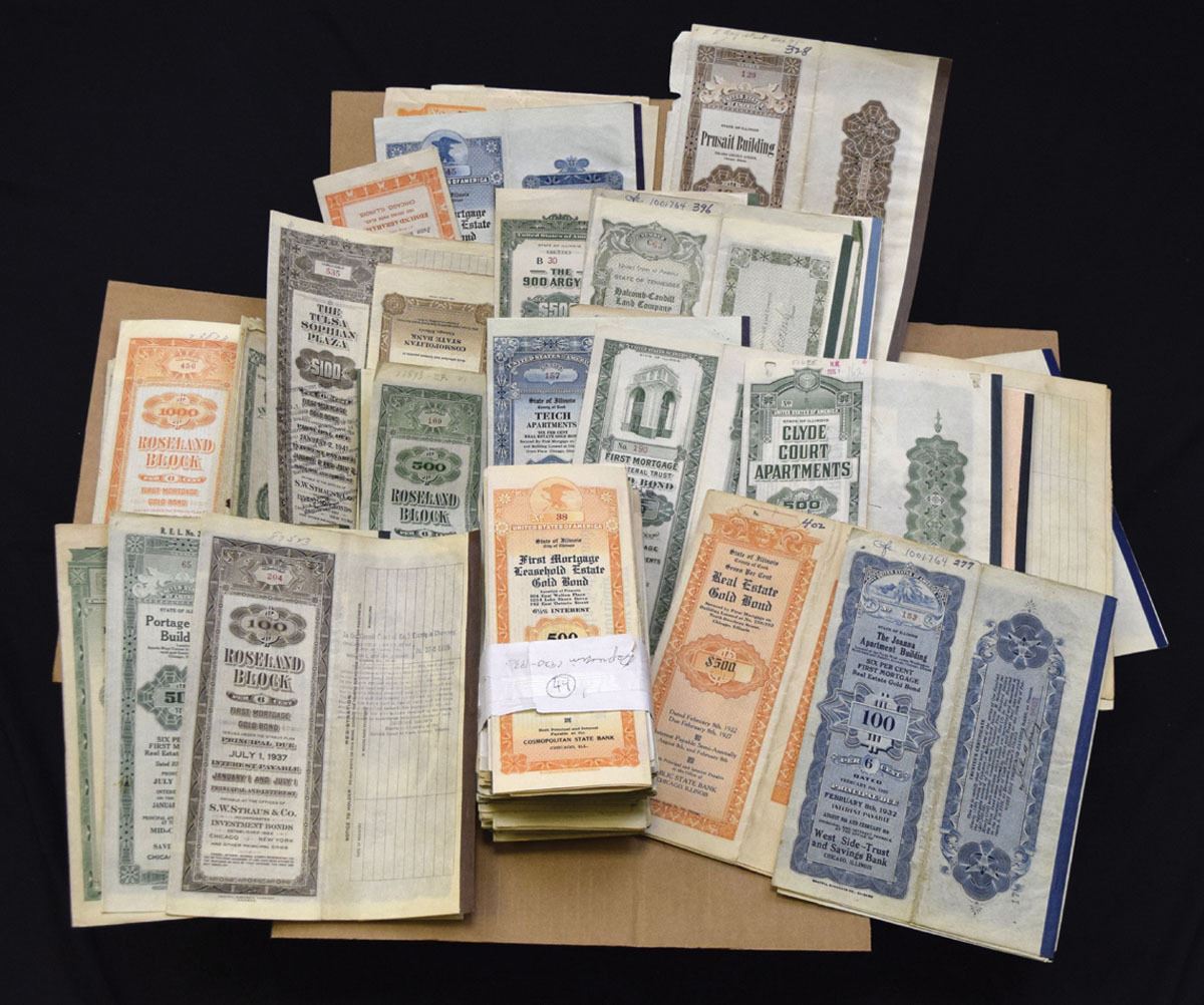 Lot of 150+ Issued Bonds Related to Real Estate companies and ventures, Bonds range from Fine to AU condition. Please inspect, there are some gems in this box. Sold "AS IS" no returns accepted.