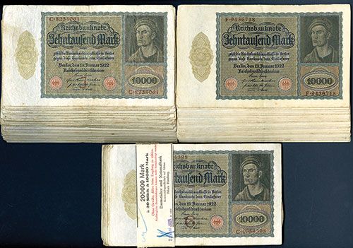 Germany, 1922, 10,000 Marks, P-70 and P-71. Condition varies between Fine to XF condition. Nice assortment of these large format notes.