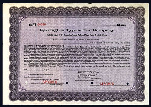 New York, 19xx, Specimen Stock, Odd Shares, Black on purple border and underprint, No vignette, POC's and red SPECIMEN overprints, VF condition, ABNC.